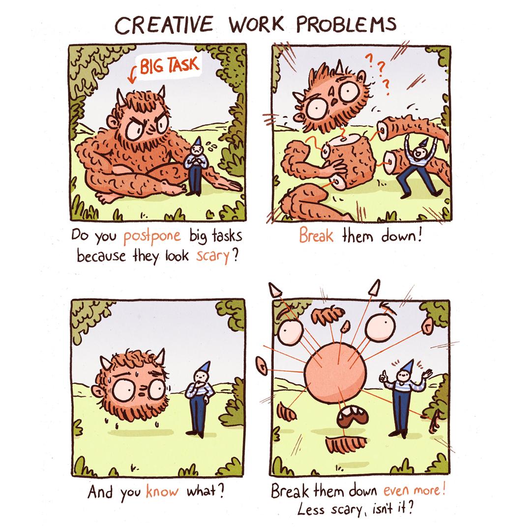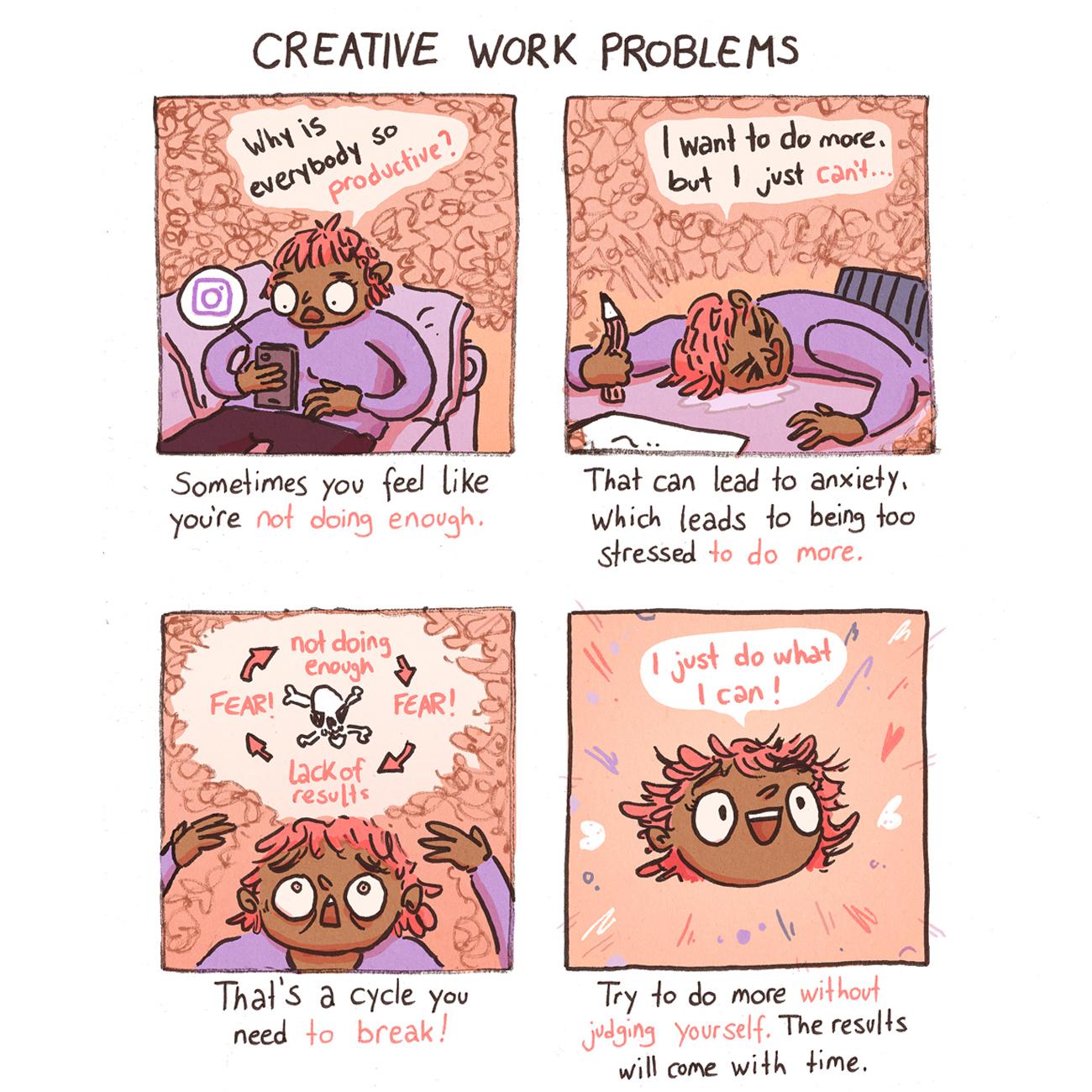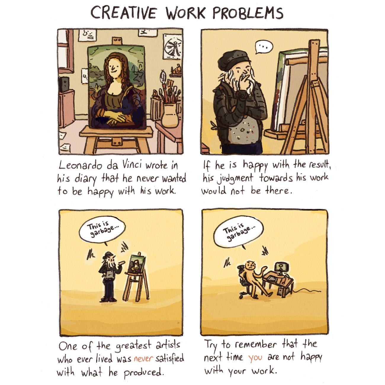 Description: “Creative Work Problems” was a weekly comic series that dealt with the problems that artists and designers face every day. It’s meant to be funny, cute, and helpful to people who have problems with their creative work.