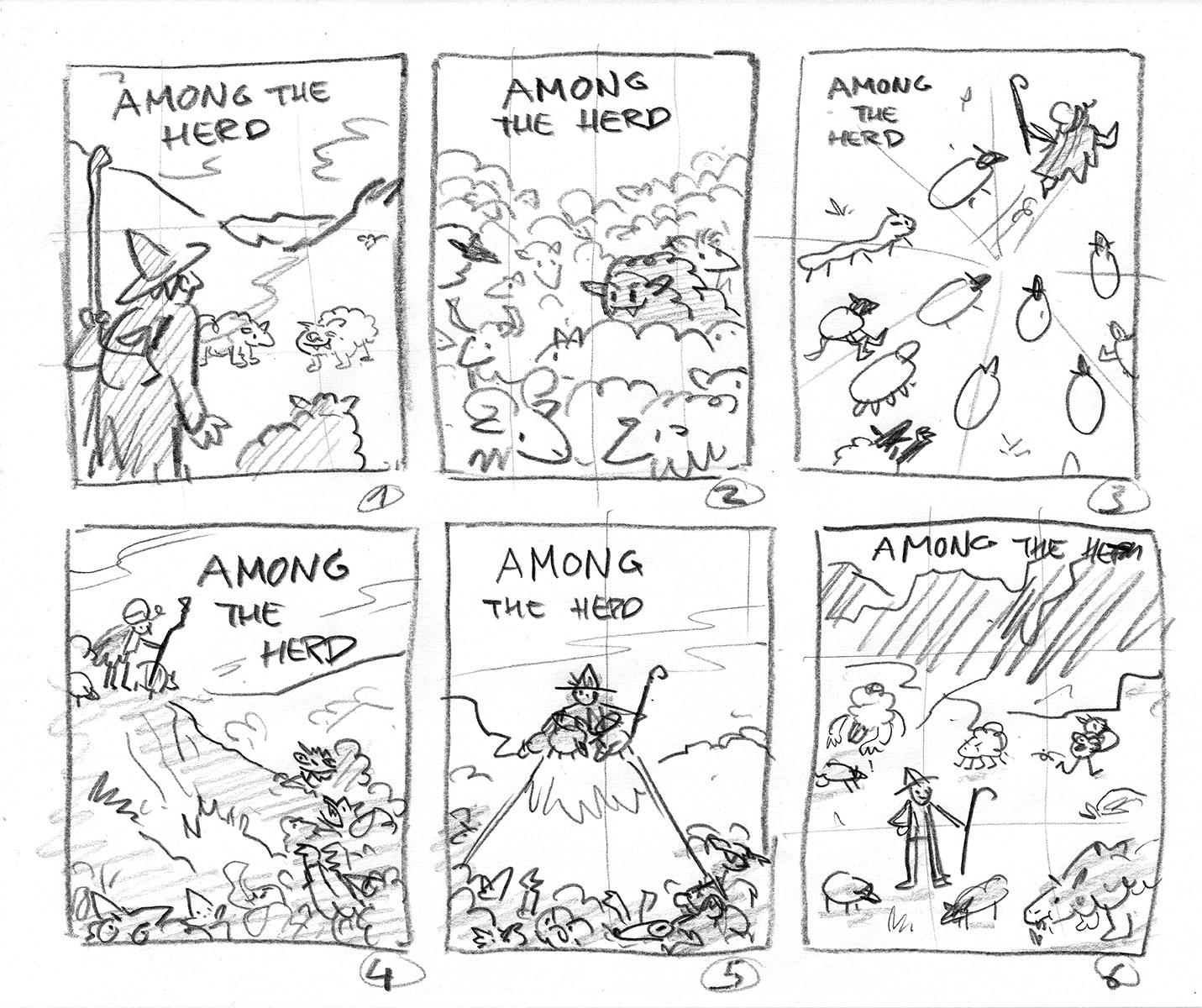 Brief: The brief was to create key illustrations that capture the quiet atmosphere of shepherding and the lurking tension of hidden danger.